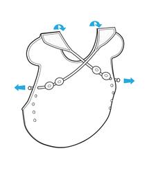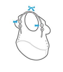 Always secure the straps when not in use to avoid choking hazard to babies. To put on, insert the silicone plug straps into one of the 3-level back holes for a criss-cross or backpack over-the-shoulder wear. Mommies may fit the fasteners before putting it on through baby's arm like in wearing a backpack/clothes. Alternative, for big and squirmy babies, use the loops on straps to fit over the buttons at the front for a traditional wear around-the-neck.